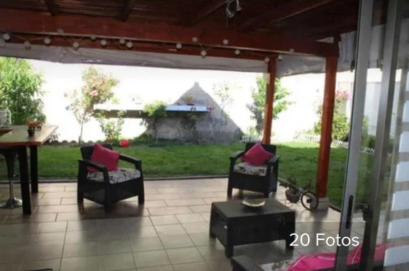 Alarma, antejardín, comedor de diario, escritorio, lavadero exterior, quincho, riego automático, sala de estar, terraza con techo, cocina amoblada, cocina equipada, hall.