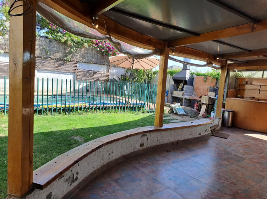 Exteriores: antejardin ,estacionamiento techado para 2 vehiculos, terraza amplia techada, quincho, piscina con calefactor.